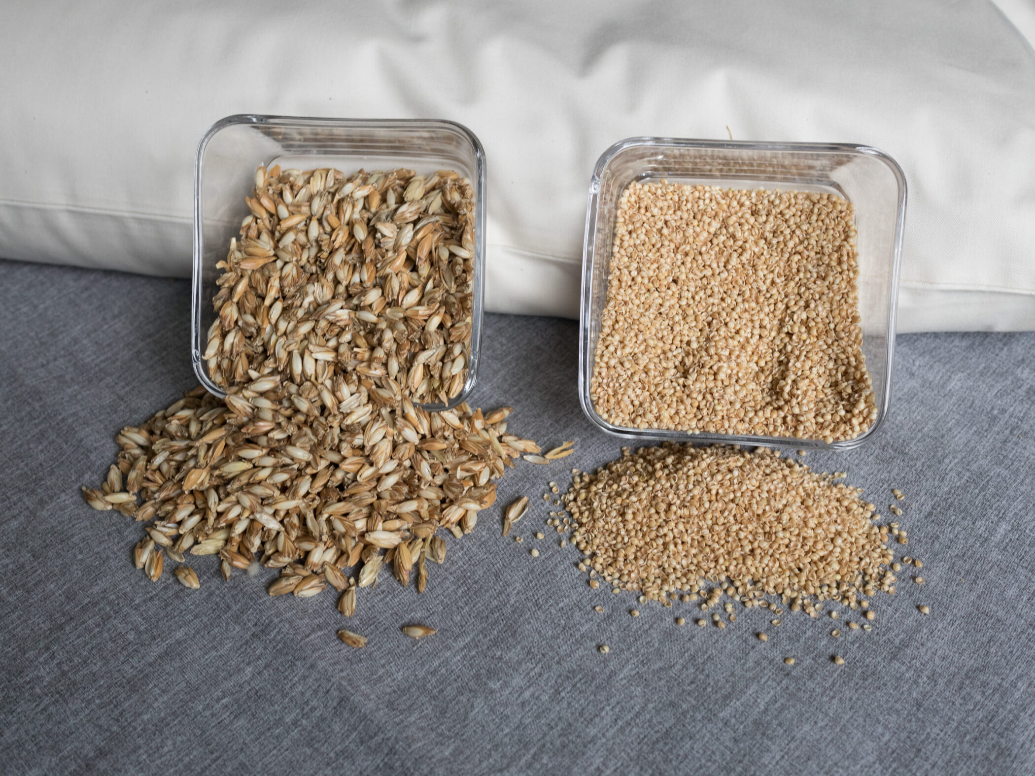 Weil sie Stabilität und Anpassung vereint: Dinkel trägt zuverlässig, Hirse passt sich feiner an – so entsteht ein Kissen, das beiden Bedürfnissen gerecht wird.